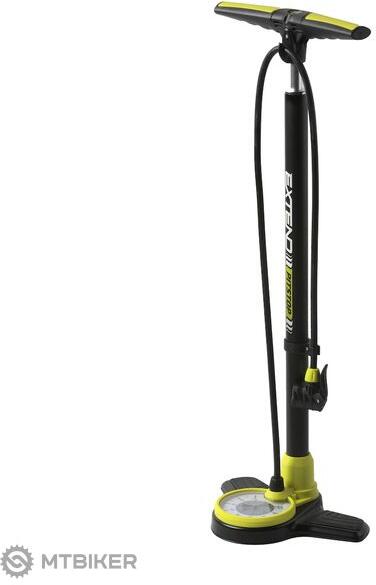 Széles acél talp csúszásgátló betétekkel a biztonságosabb lábnyomás és a maximális stabilitás érdekében felfújáskor. Tiszta és könnyen felismerhető, nagy méretű nyomásmérő 160 PSI/11 BAR-ig EXTEND kivitelben a jobb áttekinthetőség és a kívánt nyomás pontosabb felfújása érdekében.